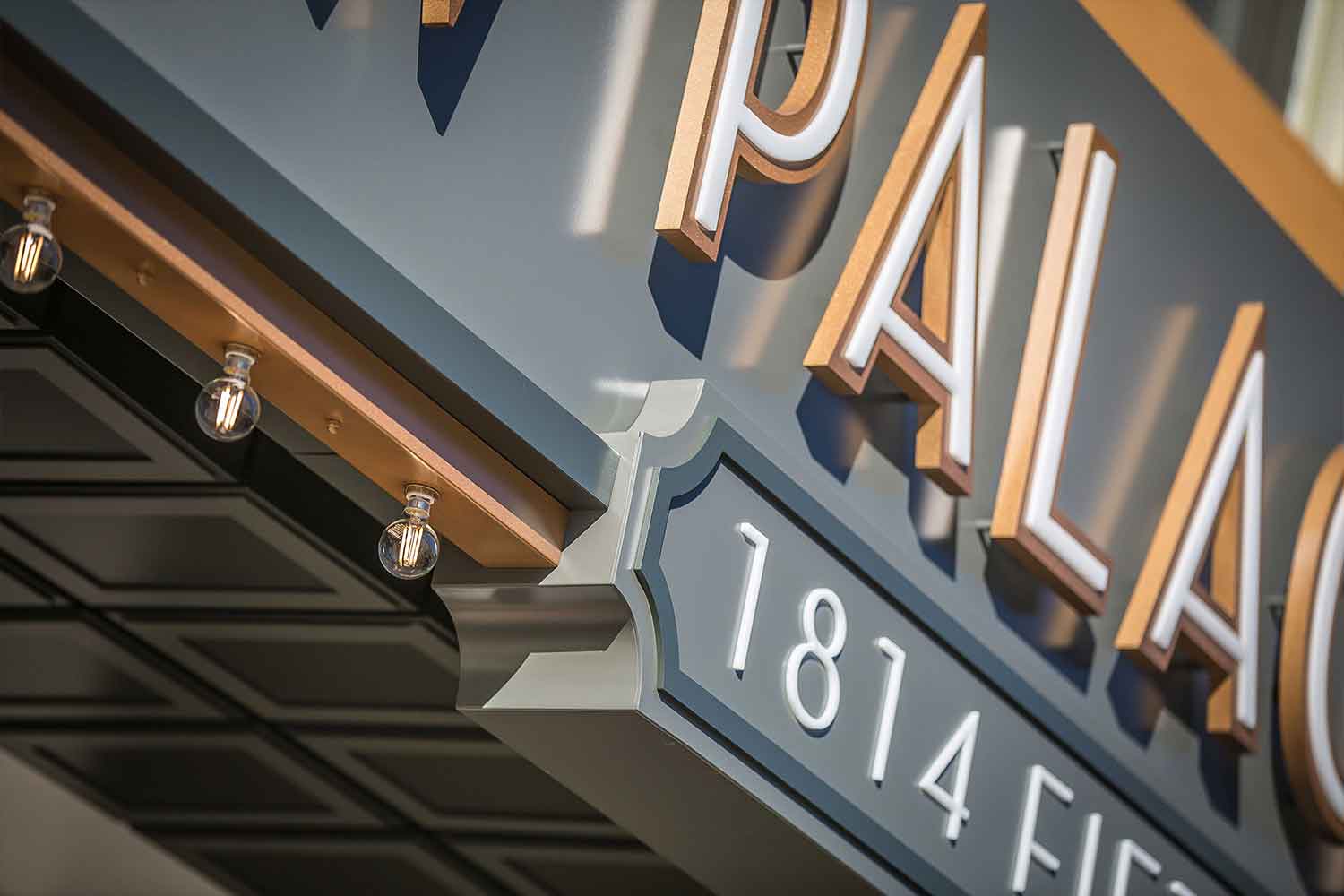 It’s not often you are invited to design build two unique signs for a historical building that wants to blend a period specific design foundation with a modern twist. In this case, we re-created their hand drawn logo and delivered them as cast aluminum plaques that display proudly on a large custom marquee with a handmade cornice, dimensional ceiling tiles, and some ultra-cool, dual-lit letters. It’s projects like these that not only reflect our teams amazing capabilities but drive us to learn more.